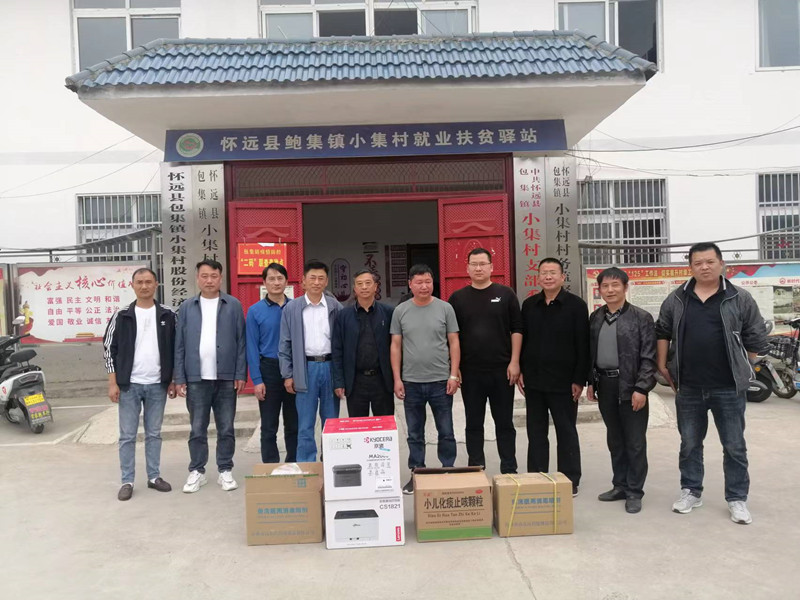 5月19日上午,312地质队党委书记、队长杜文斌,副队长张立东等一行,深入乡村振兴结对共建村——怀远县鲍集镇小集村,为该村送去一台彩色激光打印机、一台复印扫描一体机和酒精、口罩、消毒液等防疫物品,助力美好乡村建设发展。