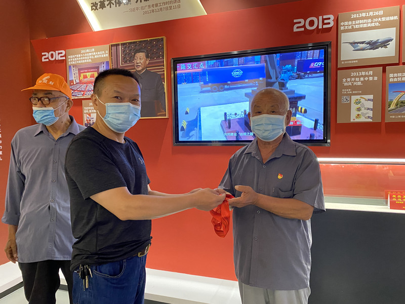 参观现场,党办主任、党支部书记唐庭忠为老党员陆家年同志颁发了“光荣在党50年”纪念章。