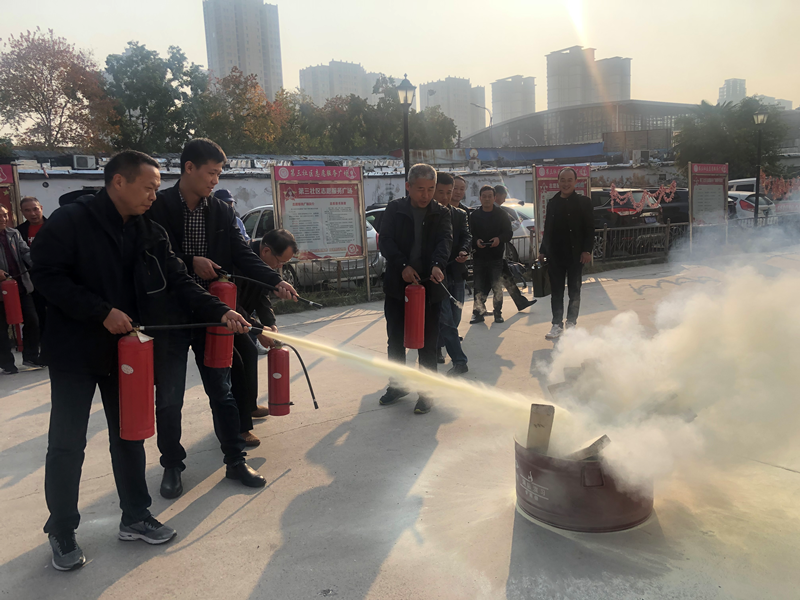 演练模拟了火灾发生后,职工有序撤离到安全地带,短时间内掌握灭火器的正确使用方法,并实际操作灭火器进行灭火。