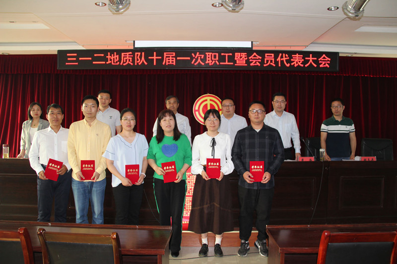 4月19日,312地质队隆重召开十届一次职工暨会员代表大会。安徽省能源化学地质工会主席张福友、蚌埠市总工会副主席周海清、蚌埠市总工会基层工作部部长王宝湖、安徽省地矿局第一水文院副院长郑立博等应邀出席大会。工会副主席苏涵主持会议。