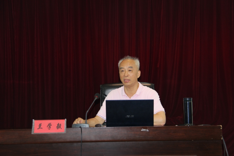 图为兰学毅教授在做先进事迹报告