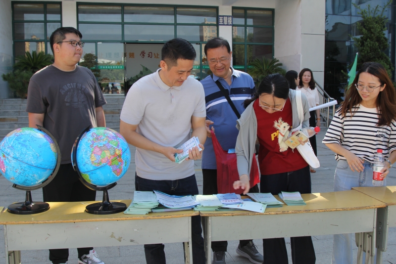 此次宣传活动还给同学们赠送了地球仪、宣传知识手册、壁挂地图等,让同学们能更直接的感受到校、局多元教育共同体跨界合作的优势与成果,让开学第一天的校园里充满知识活力。
