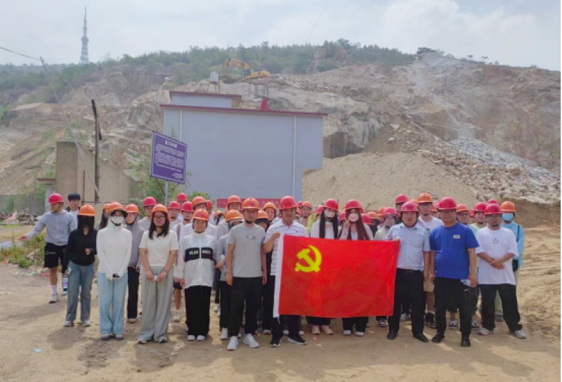 在实习结束之际,师生们在党旗下与项目部人员合影留念,共同记录下了这段难忘的学习经历。