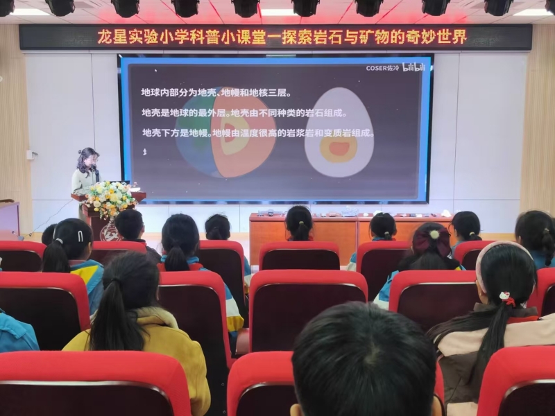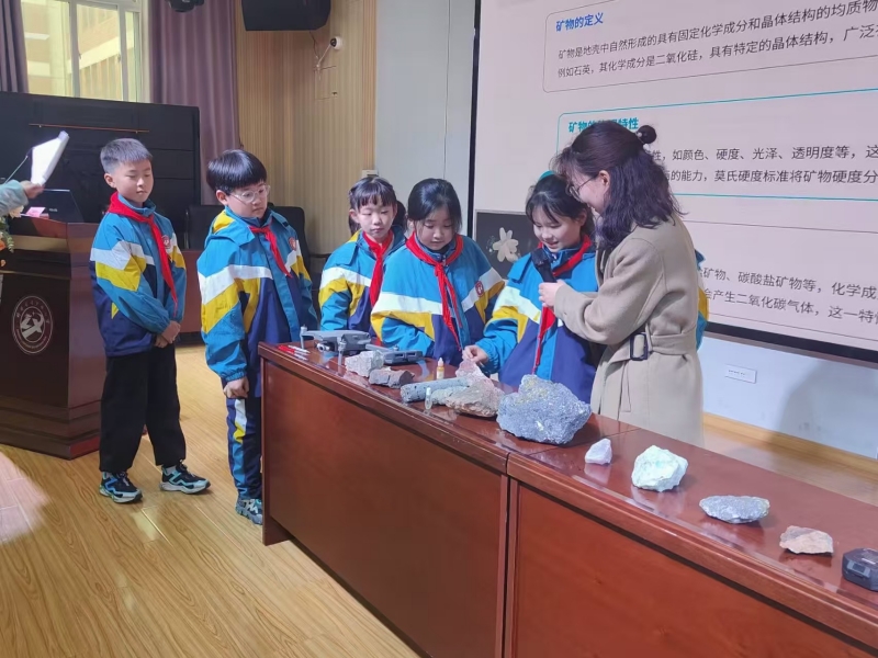 为激发学生对自然科学的兴趣,促进家庭、学校与社会的协同育人,3月12日,队团委组织我队工程师王莎走进龙星实验小学,为孩子们带来了一场别开生面的“岩石矿物科普课”。作为该校学生家长,王莎充分发挥专业特长,通过生动有趣的讲解和实践互动,引导学生探索地球科学的奥秘,培养他们的科学素养和实践能力。