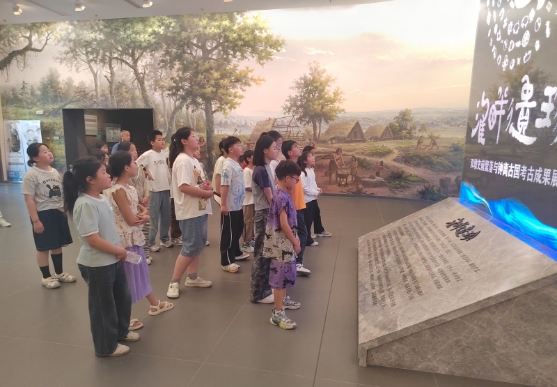 研学活动中,同学们通过参观蚌埠地标性建筑“南北分界线”雕塑,感受家乡蚌埠独特的地理位置,直观了解到中国南北地理文化差异的魅力;从蚌埠市博物馆到蚌埠市规划馆,从历史的长河一路走进新时代的现代化建设,切身感受着蚌埠历史文化的深厚底蕴和在新时代中的进步发展;来到蚌埠市文化代表性建筑“珍珠女”雕塑,了解蚌埠这座城市和“珍珠”的不解之缘;走进蚌埠市国防教育基地,了解国防知识,接受爱国主义教育;在“双墩”文化遗址公园里,从距今7300年的“陶塑雕题纹面人头像”和钟离古国”的文物中,感受先民的智慧和审美,感受淮夷族群悠久而璀璨的文化历史。