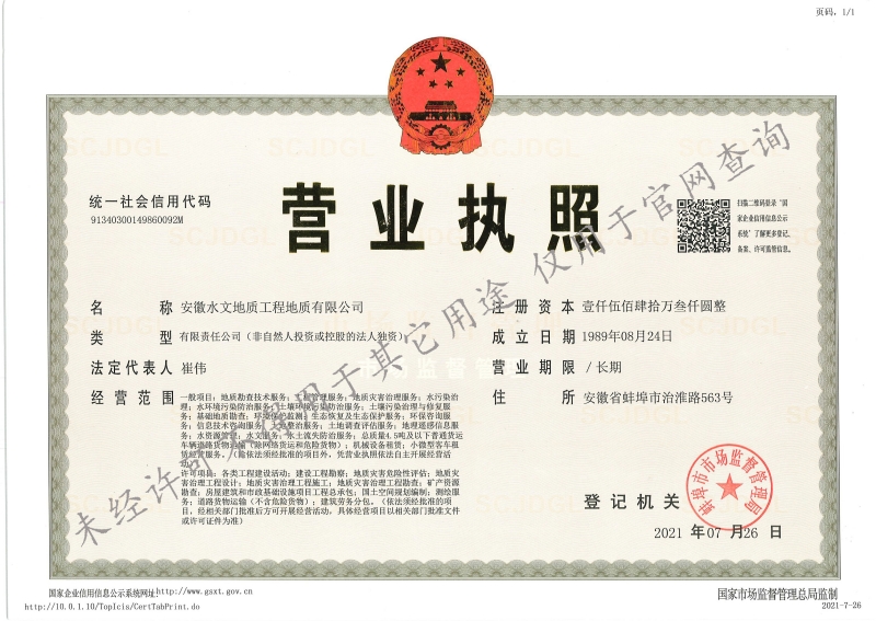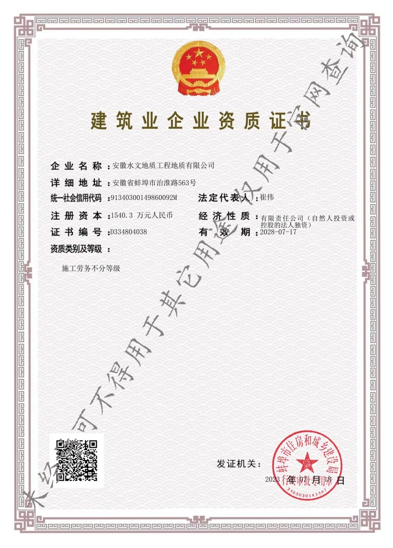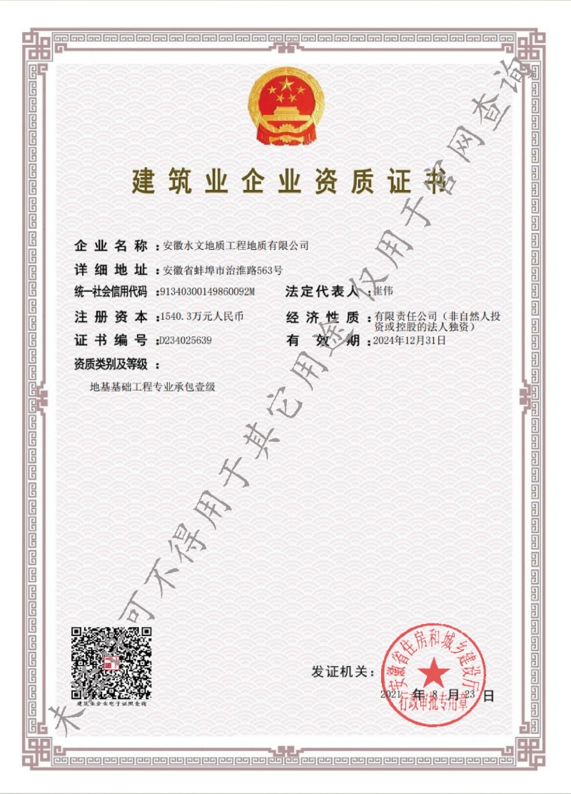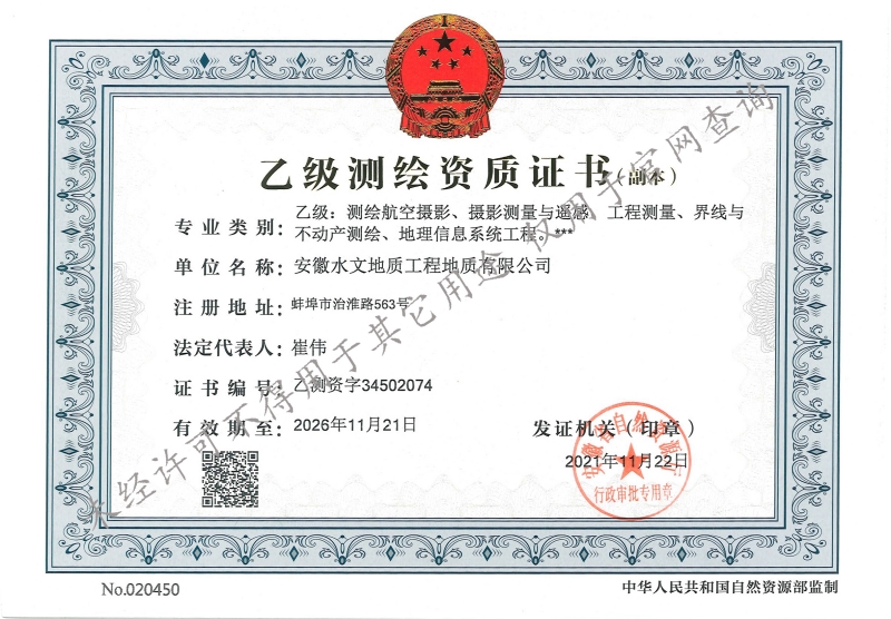 安徽水文地质工程地质有限公司成立于1989年,位于蚌埠市龙子湖区治淮路563号,注册资本金1540.3万元,是一家在资源保障、防灾减灾、生态文明建设、工程建设领域从事技术服务、测绘和施工的综合性国有企业。