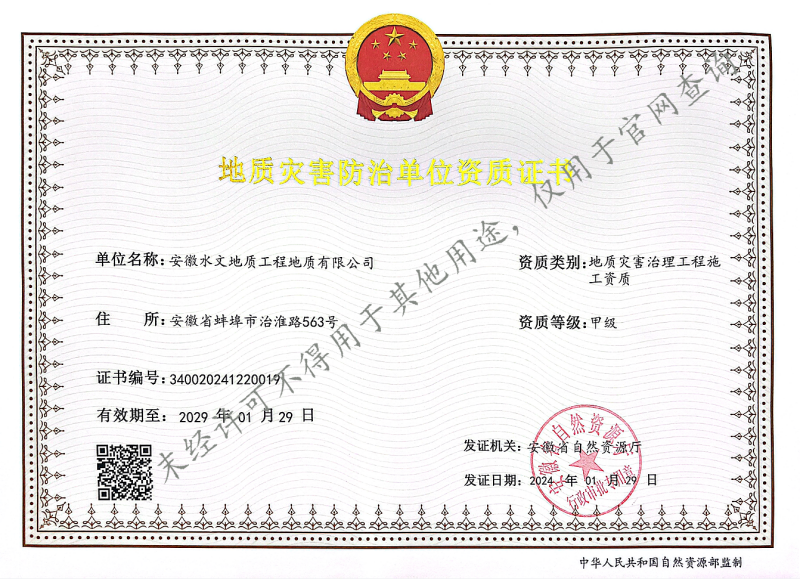 在技术服务板块,公司拥有地质灾害危险性评估乙级资质、地质灾害防治工程勘查和设计乙级资质、地质灾害防治工程监理乙级资质。长期从事地质灾害风险调查、危险性评估、防治工程勘查和设计等地质灾害全过程技术服务;从事矿产资源规划、勘查、开发、闭坑、修复等矿山全生命周期技术服务;从事国土空间生态修复规划、设计、监测和评估等全流程技术服务;从事污染场地调查、风险评估、管控和治理设计等全流程技术服务;从事地下水调查、勘查、凿井、开发利用等技术服务;从事场地土壤和地下水环境调查评价服务。